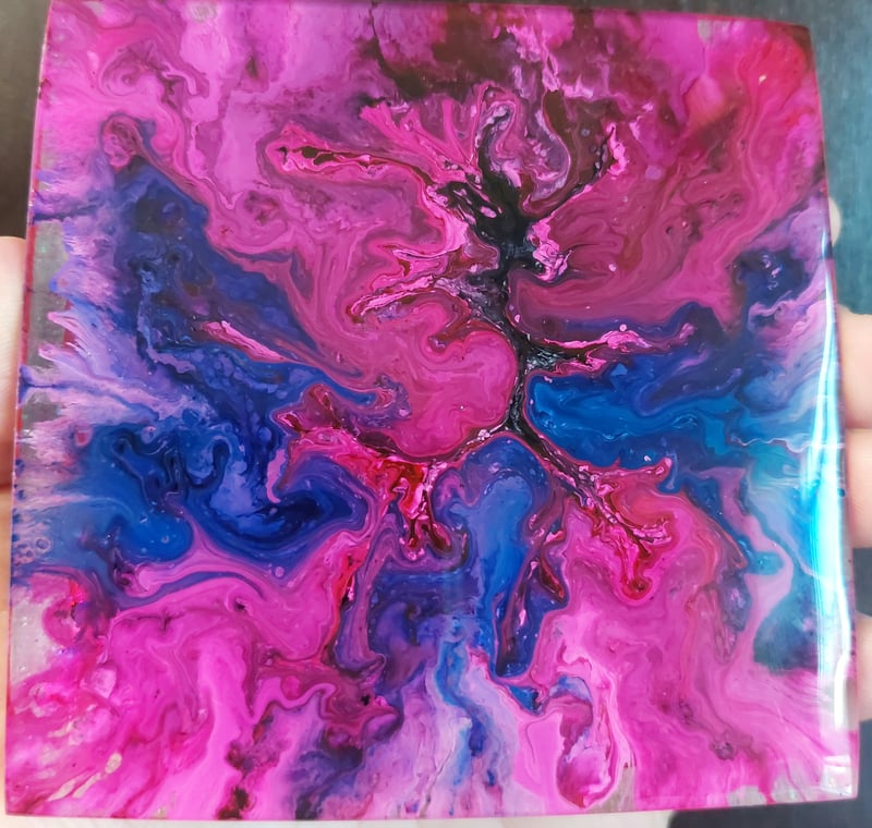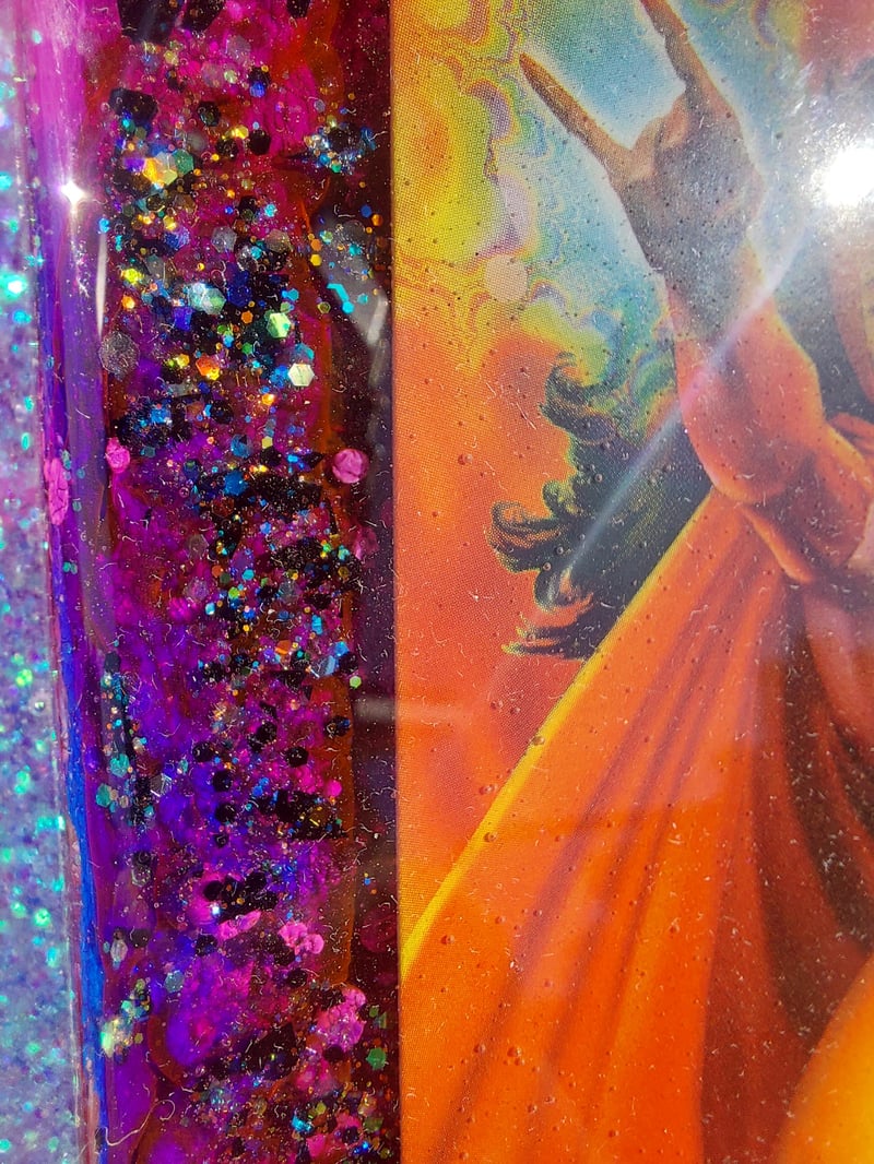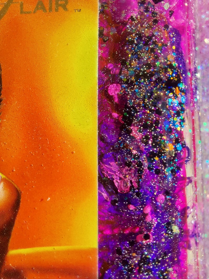 Marvel card, opal glitter, and alcohol ink in epoxy resin