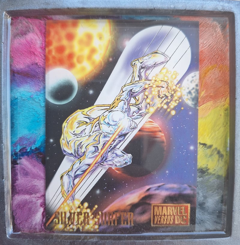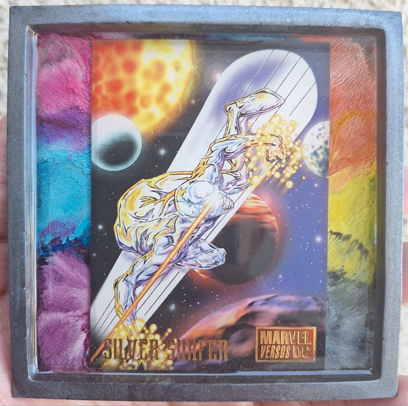 Marvel card and alcohol ink in epoxy resin