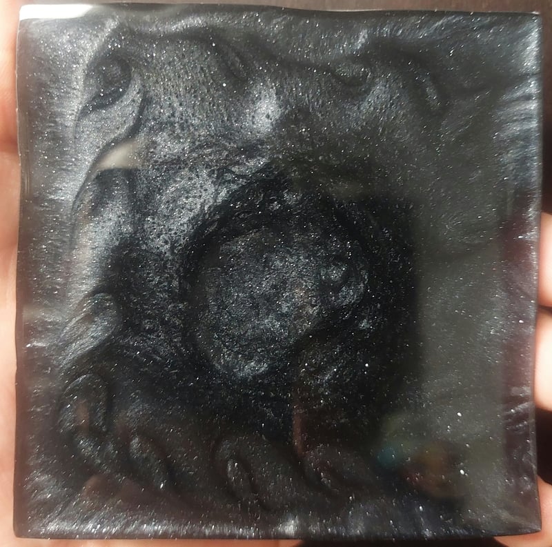 Holofoil and black pigment inside epoxy resin