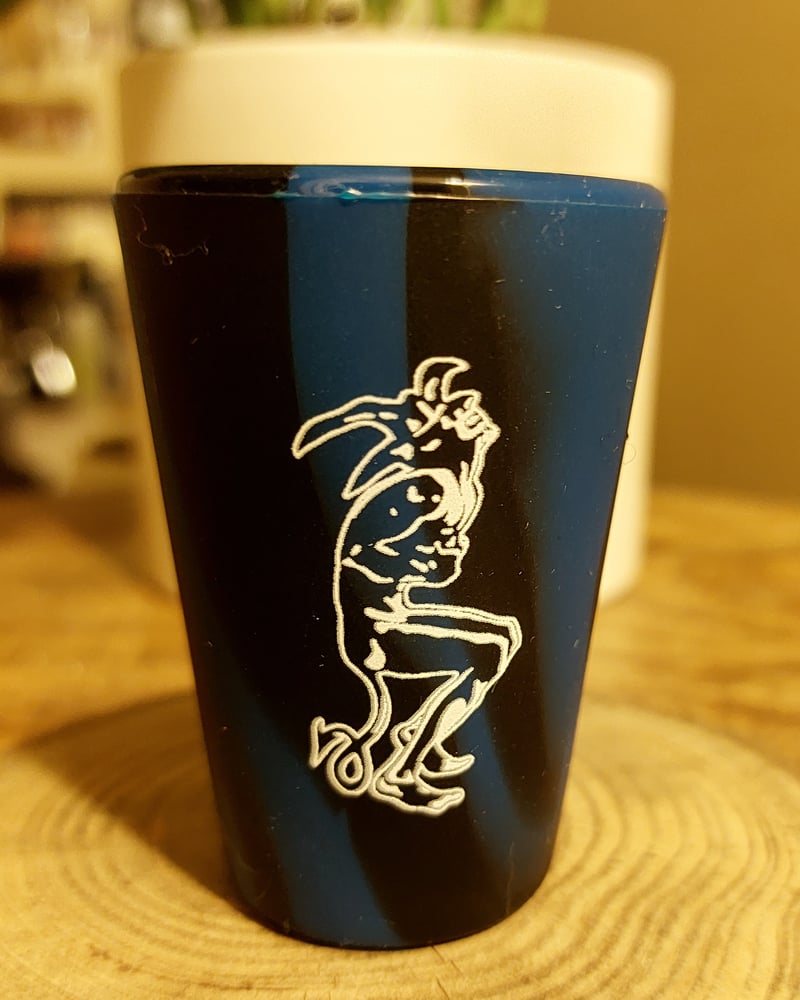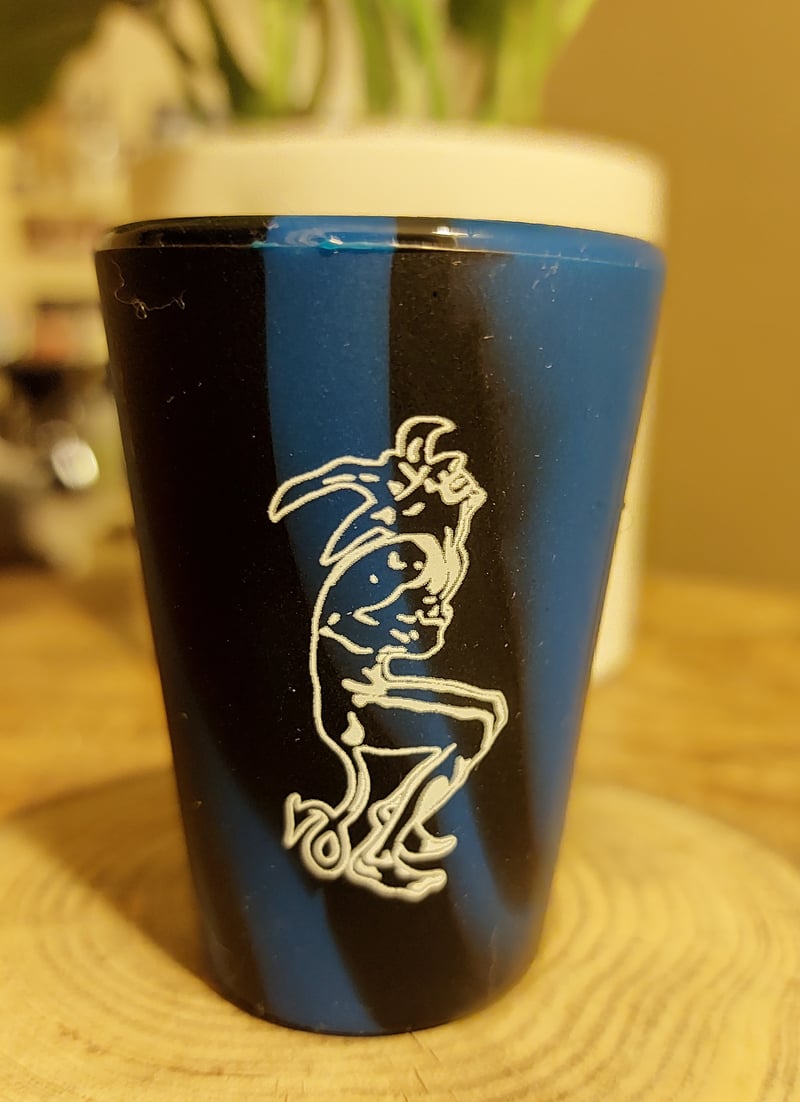 Shot glass but not glass, silicone. Dishwasher, microwave, and freezer safe. Perfect for travel. You'll never have to worry about breaking it!